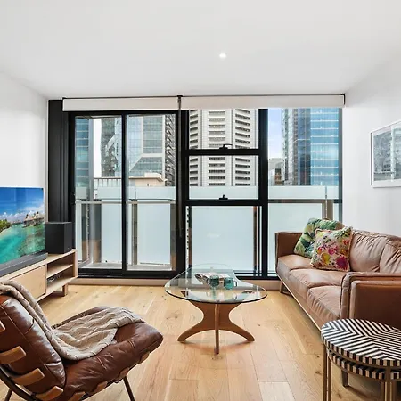 Waar bevestigt Sleek Inner-City Flat In The Heart Of Melbourne zich?